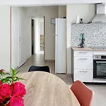 Dieses Apartment bietet eine voll ausgestattete Küche an, die mit einem Herd und einem Geschirrspüler ausgestattet ist.